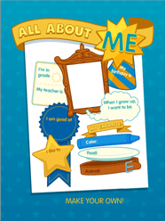 Subscriber? Log in hereAll About Me is a great first day of school activity! Kids will answer different questions about themselves through a step-by-step process. When completed the answers will be displayed in a fun layout. The final product can be saved or printed! IMPORTANT: ABCya.com cannot view and does not collect any information entered in All About Me.