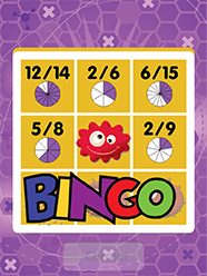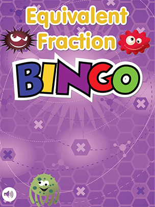 Subscriber? Log in hereEquivalent Fractions BINGO is a fun educational game for children to practice equivalent fractions. The game has two modes: Easy & Challenge. Easy mode of play displays a pie graphic to represent the fraction. The denominator is represented by the total number of slices and the numerator is represented by the colored slices. Challenge mode displays only the numerical fraction at first. If the student needs help it will introduce a pie graphic representing only the denominator. If they need further help it will display the shaded slices representing the numerator. Challenge points are awarded based on how much help the student needed to correctly answer the question. Less help = more points!