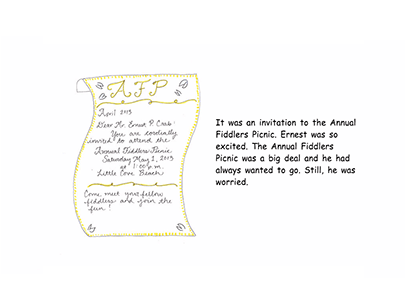 ABCya! presents its fifth children's storybook for the classroom. The Annual Fiddlers Picnic, is an original work by Michelle Tocci. The story is about a crab that must confront his fears in order to attend a picnic. He learns that you cannot believe everything you hear. This is a great storybook to share with kids using an interactive whiteboard.