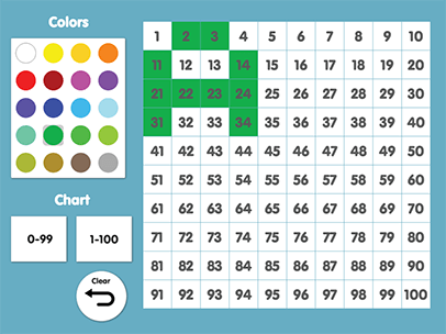The interactive number chart is a great way for students to discover number patterns, skip count, and learn multiplication tables. Color the interactive number charts to find patterns in numbers or use them for counting exercises. Children can print their charts too! ***This activity now goes up to 120!***