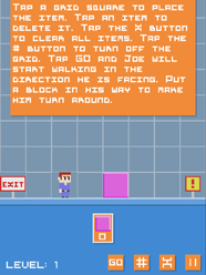 Poor Joe is lost... He needs your help to find his way home in this fun game that helps teach programing skills. Help guide Joe through each level by selecting a command and placing it on the level in the proper order. You'll have to use your problem solving skills in order to beat this challenging puzzle!