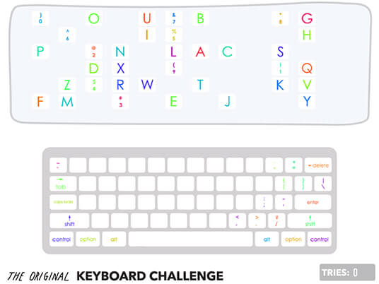 Subscriber? Log in hereImagine that your keyboard fell apart and you had to put all the keys back in their correct places! Now is your chance to practice! Your job is to put a keyboard back together. You can click and drag letters to their correct places. Only the letters in the right spots will stay! Choose the keyboard design you like below and click on it to begin. Children can select LETTERS & NUMBERS ONLY -or- ALL KEYS for an extra challenge!