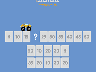 Subscriber? Log in hereCan you help the monster truck reach the goal? Place the missing numbers in the correct spot to complete the pattern and help the truck get across! Practice mode lets kids take their time figuring out the pattern. Race mode is a little more intense as kids must beat the airplane reach the goal!