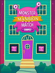 Monster Mansion Shape Match is a fun educational game for kids to learn and practice 2D and 3D shapes. Click on the windows of the Monster Mansion to reveal the friendly monsters inside and match objects to shapes or objects to words. Children can play by memory or while seeing the objects. All shapes are supported by audio instruction. Shapes: triangle, sphere, trapezoid, cube, hexagon, crescent, cylinder, cone, heart, rhombus, half circle, circle, oval, octagon, star, pyramid, rectangle, parallelogram, square, and quarter circle.