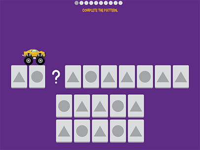 Subscriber? Log in hereShape patterns is a fun way for kids to practice identifying patterns. Help the monster truck get across the bridge by correctly placing the missing shapes in the pattern. Each round gets a little more difficult and requires more trial and error than the previous. Kids can play one of two different modes: practice or race! Practice mode allows kids to take their time while race mode lets them play against the computer!