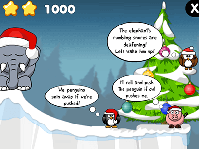 It's a winter wonderland but not everyone is happy. The elephant is snoring and the friends cannot sleep. Kids will need to strategize to wake up the elephant by rolling into him in this fun physics game.