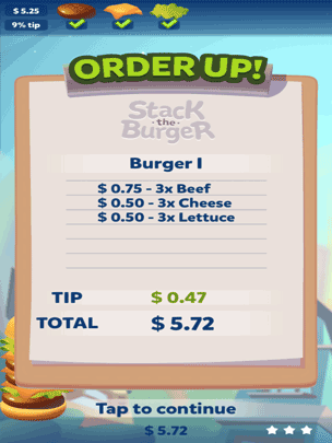 Subscriber? Log in hereOrder up! Do you have what it takes to stack these burgers just how the customer likes it? Use your mouse/finger to move the bottom-bun and stack the burger order on the top of the screen. Watch out for the top-bun though if the order isn't complete!