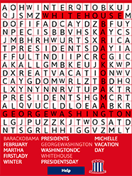 Presidents' Day Word Search is a fun holiday activity for children. Kids learn and practice Presidents' Day vocabulary by searching for the words in the puzzle. Puzzles can be played interactively on the computer or printed out.