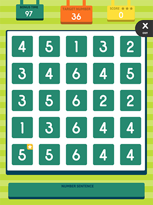 Clear It Multiplication is a cool math game to practice and extend math factors. Players must create number sentences that multiply to the target numbers provided. Earn stars for extra points and clear the board before the timer runs out for extra points. There are three levels of difficulty. Clear It supports strategic reasoning and computational flexibility.