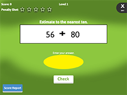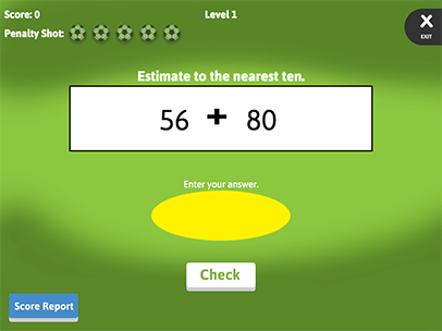 Soccer Math: Estimating is a fun way for kids to practice estimating sums, differences, products and quotients. There are different levels of difficulty in each exercise making the game appropriate for a variety of students and grades. The game offers a fun penalty shot feature after players get five correct in-a-row.