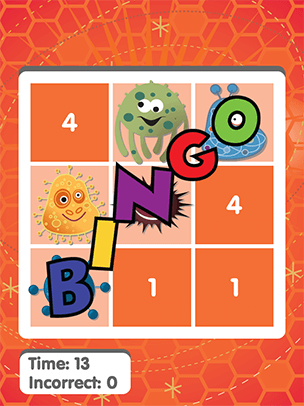 Subscriber? Log in hereMath BINGO is a fun way for children to practice math facts on the computer. Choose from addition, subtraction, multiplication or division BINGO, then select a level of difficulty.