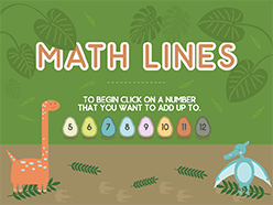 Subscriber? Log in hereMath Lines Addition is fast-paced educational game for kids to practice adding numbers. Combine two number balls that add up to the target number. The game is won when all number balls have been eliminated before reaching the exit hole. The faster you clear the balls the more bonus points you will receive. HINT: Group like-numbered balls to eliminate several at the same time.