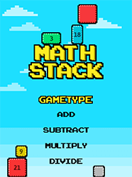 Subscriber? Log in hereMath Stack is fun game to practice addition, subtraction, multiplication, and division! Tap the falling blocks to answer the equation listed at the top of the screen and score 100 points to complete the level. Be careful to not let the blocks stack to the top though!