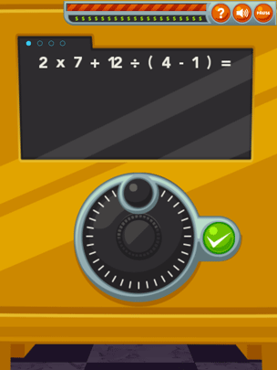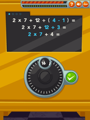 Your mission if you should choose to accept it, is to help Kit Foxtail get the townfolk's money back by the evil Duke Von Wolfington. In order to complete your mission, you will need to crack open some safes using your knowledge of the Order of Operations. Solve the equation in the correct order by touching two numbers and one operator. Use the dial to select the correct answer and click the "check mark" to enter that number into the equation. You only have a limited time to answer all four questions, so you'll need to think fast!