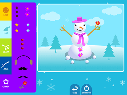 Fun for all ages! Children click and drag different shapes to make a snowman. Kindergarten to second grade students learn and practice valuable mouse manipulation techniques. Have Fun!