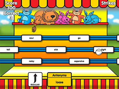 Word Toss: Synonyms and Antonyms is a fun educational game for kids to practice matching synonyms and antonyms. Kids can choose from two different levels of difficulty before they play. The rules of the game are simple. Get 10 correct matches and choose a new ball! Get 3 incorrect in a row and the game is over! HINTS: *A synonym is a word that has the same or nearly the same meaning as another word. *An antonym is a word that has the opposite meaning of another word.