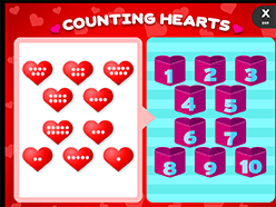 In this fun learning activity children must pick a heart and count the number of dots inside it. Next, students should match the number of dots counted to a box below and drag the heart to the correct box. Children practice number recognition and counting dots one to ten in this primary grade learning activity.