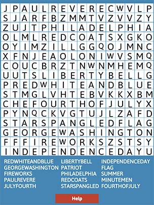 Subscriber? Log in hereIndependence Day Word Search is a fun holiday activity for children. Kids learn and practice Independence Day vocabulary by searching for the words in the puzzle. Puzzles can be played interactively on the computer or printed out.