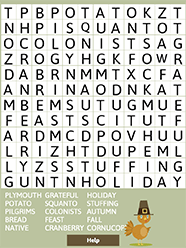 Thanksgiving Word Search is a fun holiday activity for children of all ages. Puzzles can be created two ways: a small grid with shorter words or a larger grid with longer words. This feature will allow younger children to enjoy the puzzles too! You can print or play online.